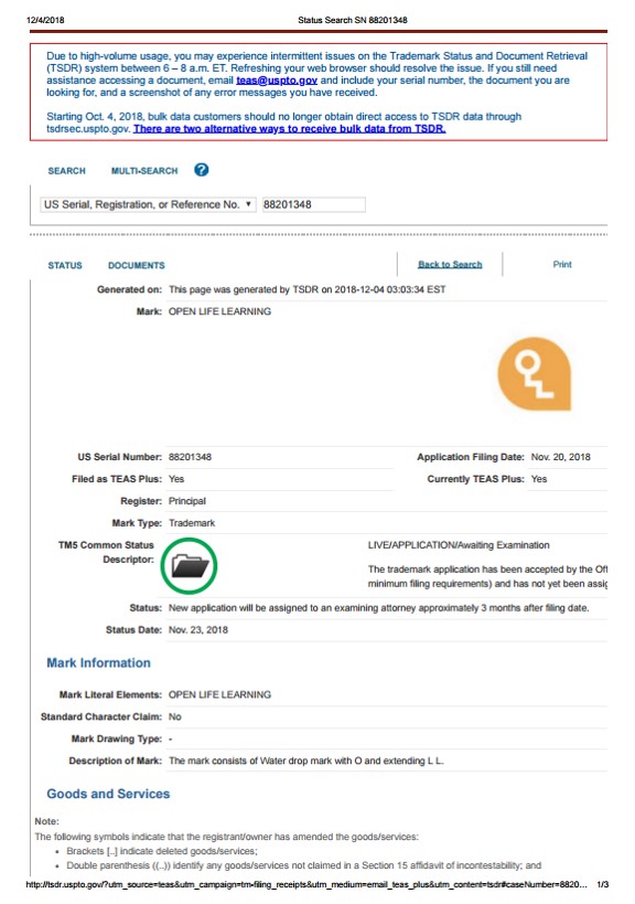 [USA/Trademark] Open Life Learning